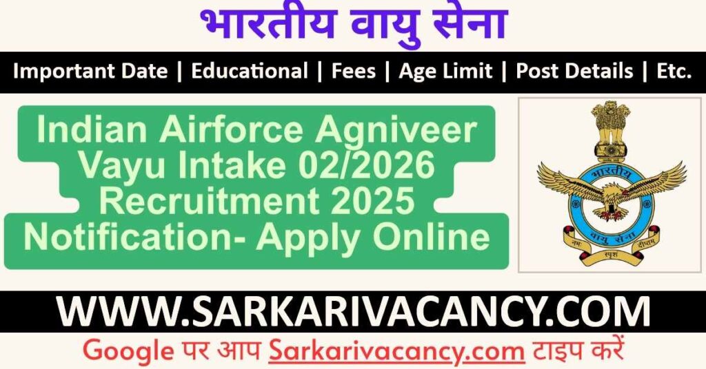 Indian Airforce Agniveer Vayu Intake 02/2026 Recruitment 2025 – Full NotificationWWW.SARKARIVACANCY.COM |