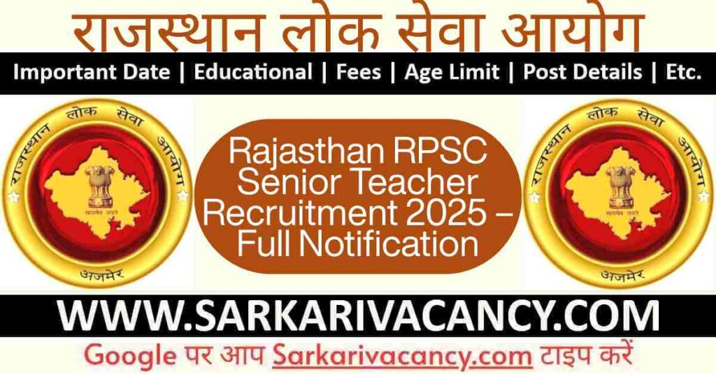 Rajasthan RPSC Senior Teacher Recruitment 2025 – Full NotificationWWW.SARKARIVACANCY.COM |